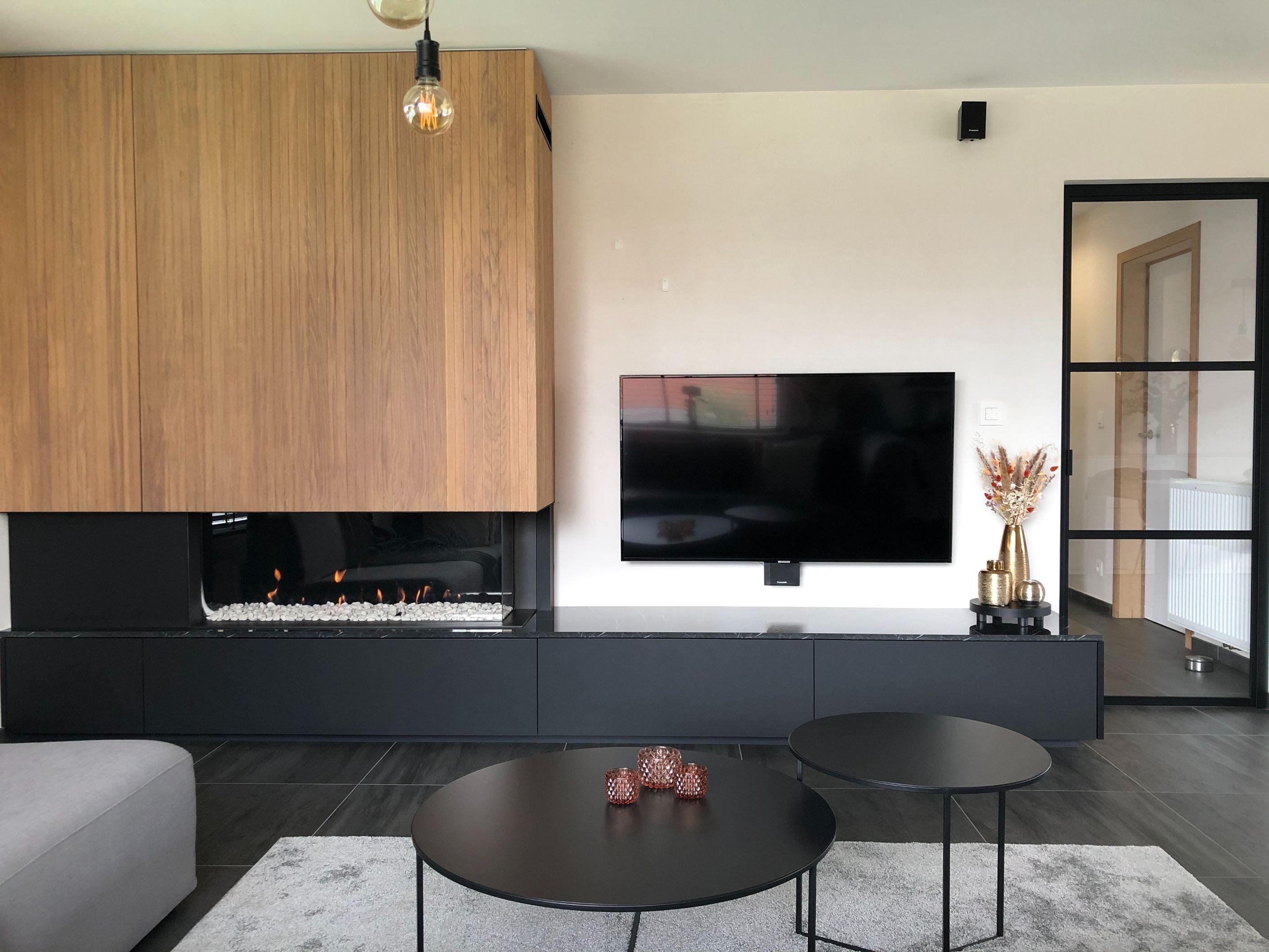De positie van de haard in de ruimte heeft een impact op het creëren van de haardwand. Eens de juiste positie van de haard is gekend kan de haardwand worden vormgegeven. Het wandmeubel met haard kan nu verder worden opgebouwd in functie van de wensen van de klant. Wil je een praktische, functionele haardwand, wil je een decoratieve haardwand, ... Alles kan, je noden worden samen besproken.