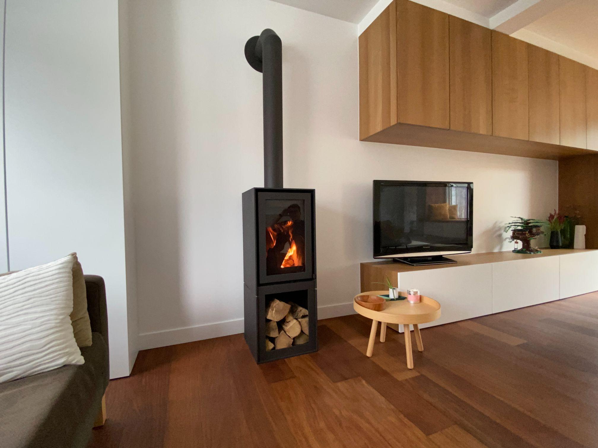 Deze vrijstaande houtkachel van Barbas werd gekozen om als uniek meubel deel uit te maken van de leefruimte.
