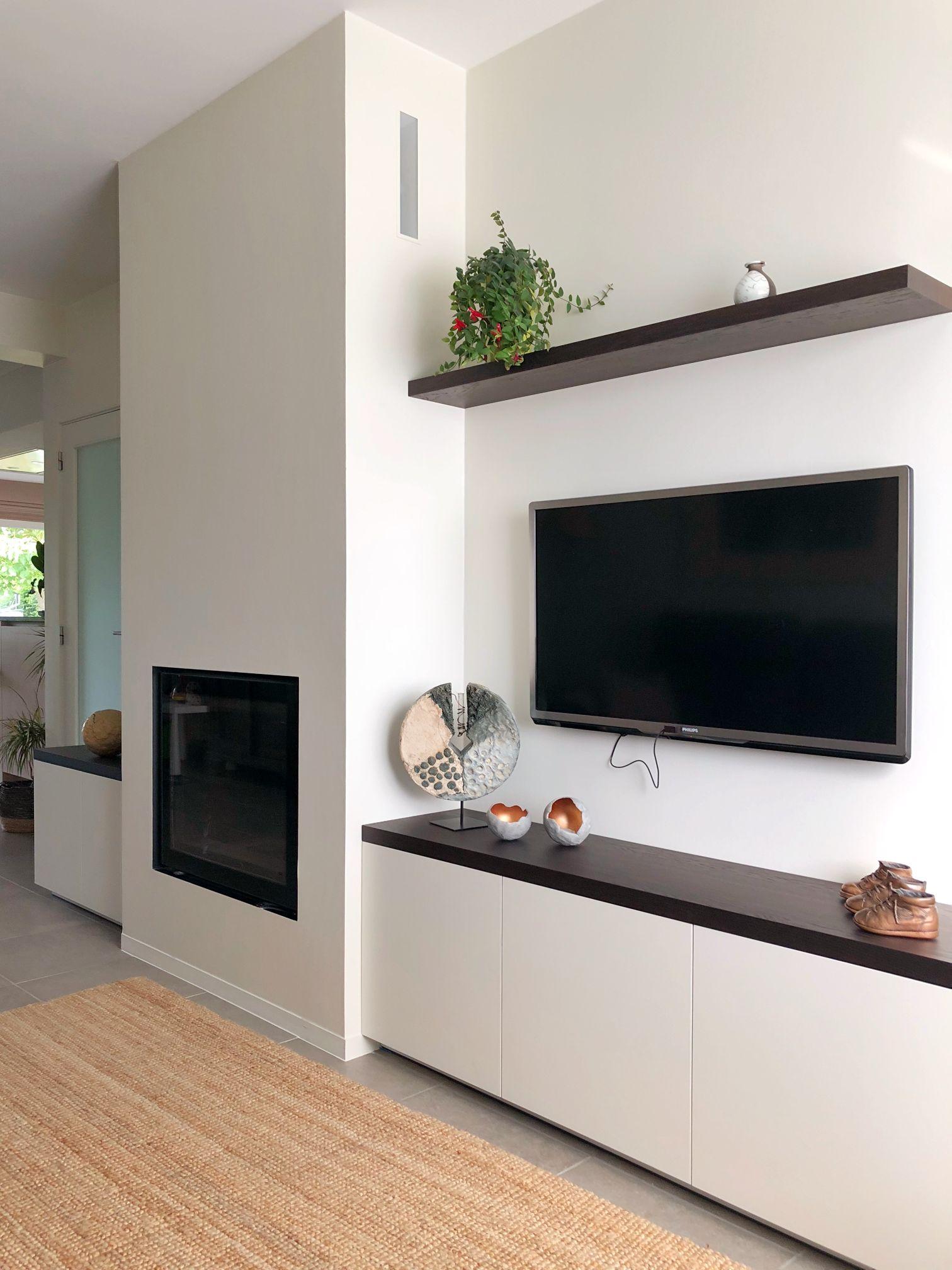 de bestaande open haard moest hier plaats maken voor een inbouwhaard op hout van M-design haarden. Voor de haardwand afwerking kozen we die af te werken met donker fineer. van shinnoki.