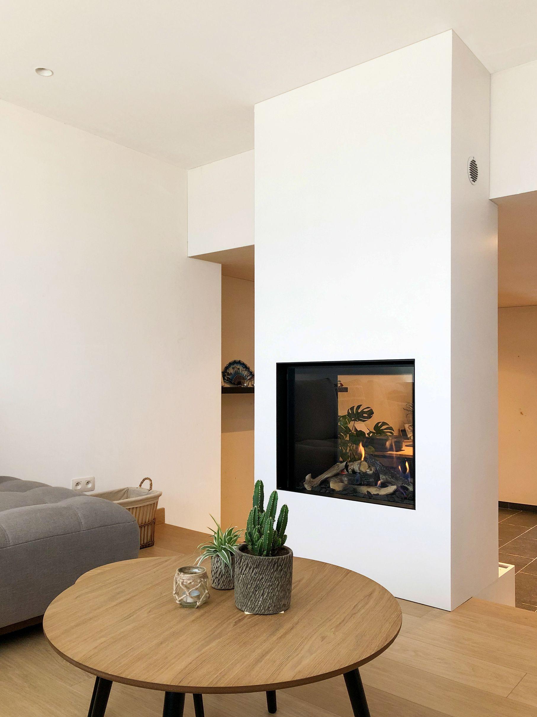 Hiernaast een installatie gashaard Barbas in een bestaande schouw.